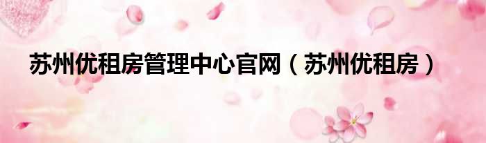苏州优租房管理中心官网(苏州优租房)