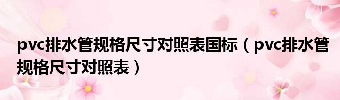 pvc排水管规格尺寸对照表国标(pvc排水管规格尺寸对照表)