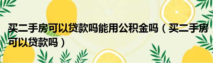 买二手房可以贷款吗能用公积金吗(买二手房可以贷款吗)