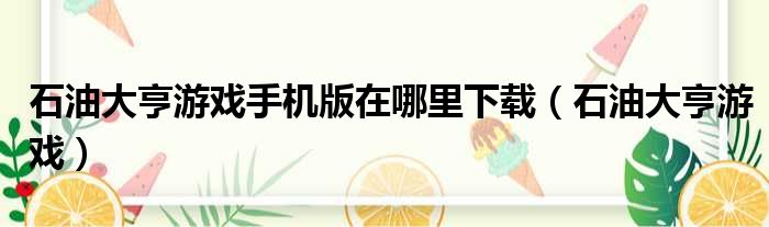 石油大亨游戏手机版在哪里下载,石油大亨游戏很多人还不知道,今天乐天来为大家解答以上问题,现在让我们一起来看看吧!