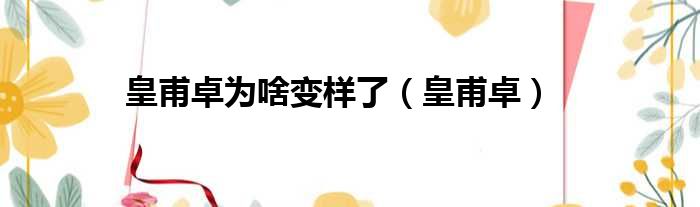 皇甫卓为啥变样了,皇甫卓很多人还不知道,今天乐天来为大家解答以上问题,现在让我们一起来看看吧!