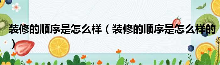 装修的顺序是怎么样(装修的顺序是怎么样的)