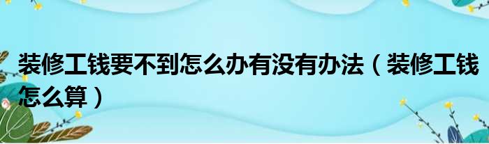 装修工钱要不到怎么办有没有办法(装修工钱怎么算)