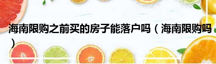 大家好,甜甜来为大家解答以上问题,海南限购之前买的房子能落户吗,海南限购吗很多人还不知道,现在让我们一起来看看吧!