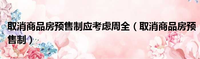 取消商品房预售制应考虑周全(取消商品房预售制)