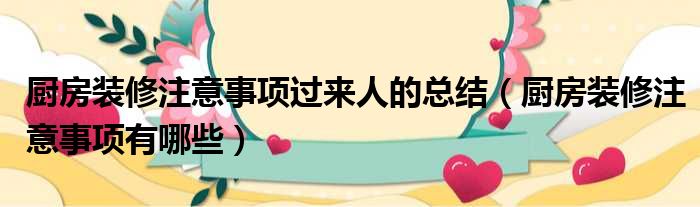 厨房装修注意事项过来人的总结(厨房装修注意事项有哪些)