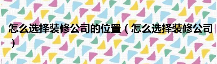 怎么选择装修公司的位置(怎么选择装修公司)