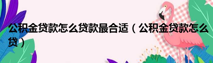 公积金贷款怎么贷款最合适(公积金贷款怎么贷)
