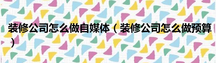 装修公司怎么做自媒体(装修公司怎么做预算)