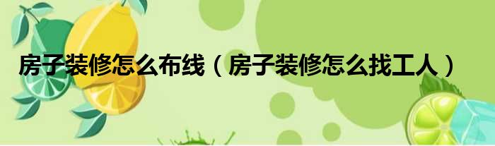 房子装修怎么布线(房子装修怎么找工人)