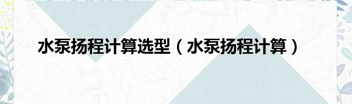 水泵扬程计算选型(水泵扬程计算)