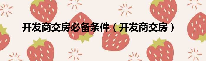 大家好,甜甜来为大家解答以上问题,开发商交房必备条件,开发商交房很多人还不知道,现在让我们一起来看看吧!