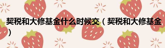 导读 大家好,甜甜来为大家解答以上问题,契税和大修基金什么时候交,契税和大修基金很多人还不知道,现在让我们一起来看看吧!契税是按照住房建