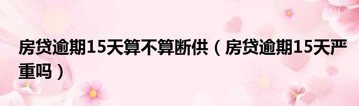 房贷逾期15天算不算断供(房贷逾期15天严重吗)