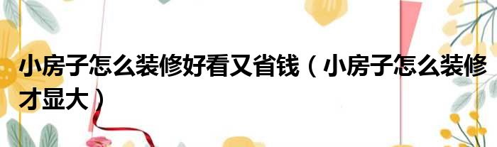 小房子怎么装修好看又省钱(小房子怎么装修才显大)
