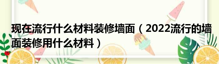 现在流行什么材料装修墙面(2022流行的墙面装修用什么材料)