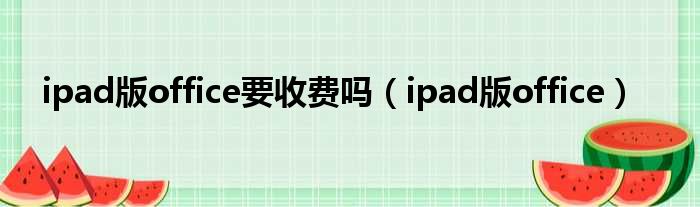 ipad版office要收费吗(ipad版office)