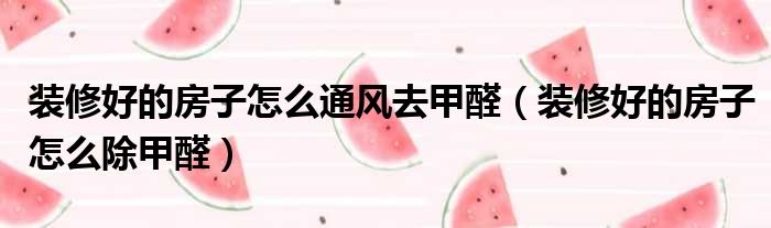 装修好的房子怎么通风去甲醛(装修好的房子怎么除甲醛)