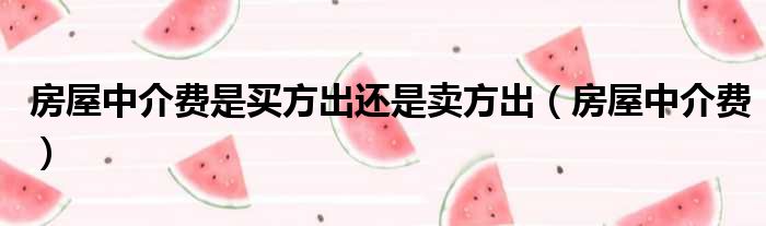 房屋中介费是买方出还是卖方出(房屋中介费)