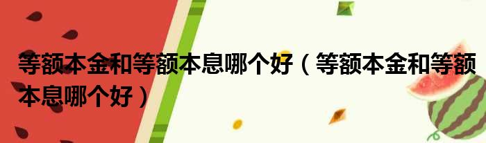 等额本金和等额本息哪个好(等额本金和等额本息哪个好)