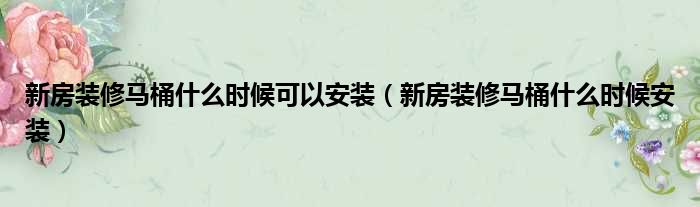 新房装修马桶什么时候可以安装(新房装修马桶什么时候安装)
