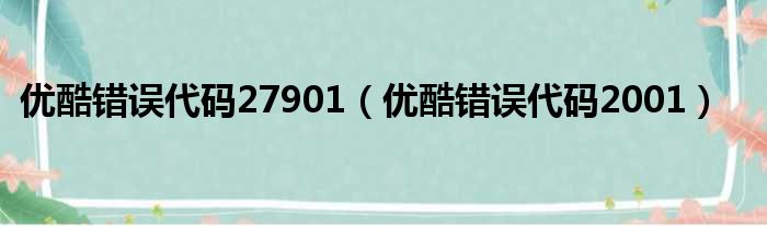优酷错误代码27901,优酷错误代码2001很多人还不知道,今天乐天来为大家解答以上问题,现在让我们一起来看看吧!