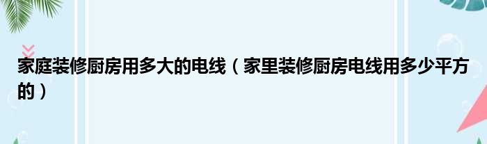 家庭装修厨房用多大的电线(家里装修厨房电线用多少平方的)