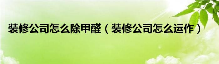 大家好,啊来为大家解答以上的问题。装修公司怎么除甲醛,装修公司怎么运作这个很多人还不知道,现在让我们一起来看看吧!