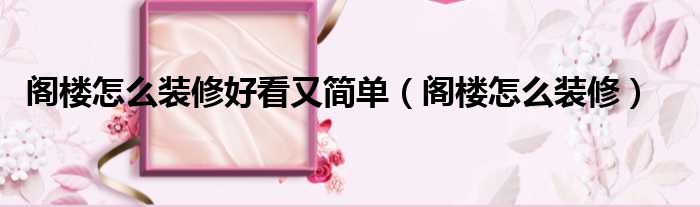 阁楼怎么装修好看又简单(阁楼怎么装修)