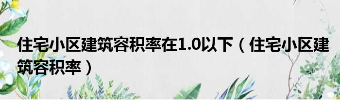 住宅小区建筑容积率在1.0以下(住宅小区建筑容积率)