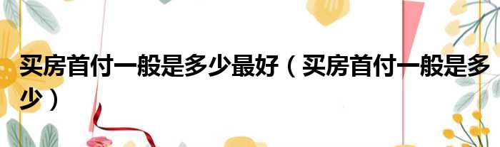 买房首付一般是多少最好(买房首付一般是多少)