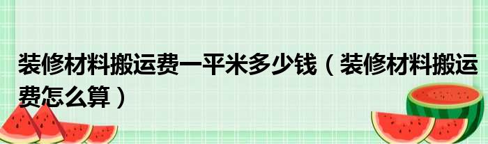装修材料搬运费一平米多少钱(装修材料搬运费怎么算)