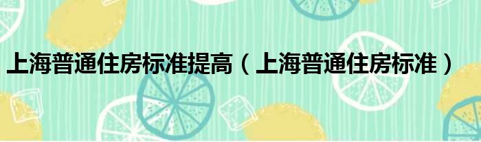 大家好,甜甜来为大家解答以上问题,上海普通住房标准提高,上海普通住房标准很多人还不知道,现在让我们一起来看看吧!
