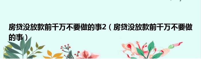 房贷没放款前千万不要做的事2(房贷没放款前千万不要做的事)