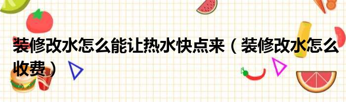 装修改水怎么能让热水快点来(装修改水怎么收费)