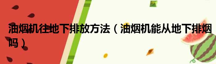 油烟机往地下排放方法(油烟机能从地下排烟吗)