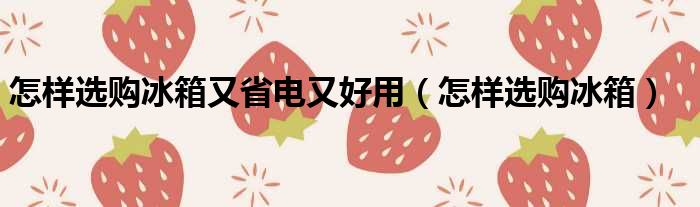 怎样选购冰箱又省电又好用(怎样选购冰箱)