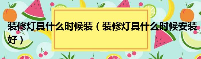 装修灯具什么时候装(装修灯具什么时候安装好)