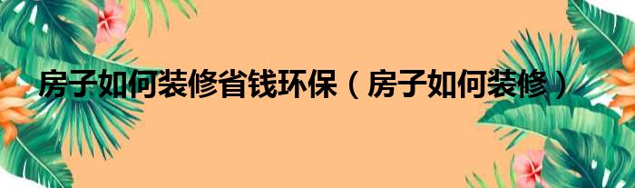 房子如何装修省钱环保(房子如何装修)