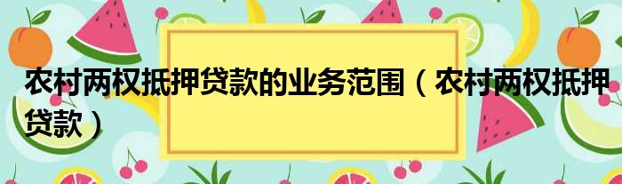 农村两权抵押贷款的业务范围(农村两权抵押贷款)