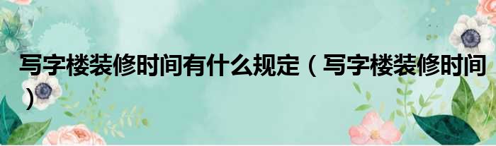 有规定。一般在进行写字楼装修之前,需要和写字楼物业管理公司签订装修管理协议,或者租赁装修协议书里面就有关于装修施工时间的规定。大型写字楼装修施工是周一至周五晚上21点至次日早上6点。周六周日可以全天施工。每个写字楼装修时间管理规定不同,具体施工时间以装修项目物业装修规定为准。