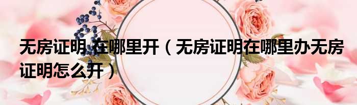 无房证明 在哪里开(无房证明在哪里办无房证明怎么开)