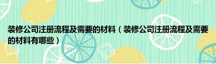 装修公司注册流程及需要的材料(装修公司注册流程及需要的材料有哪些)