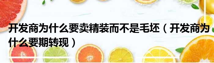 开发商为什么要卖精装而不是毛坯(开发商为什么要期转现)