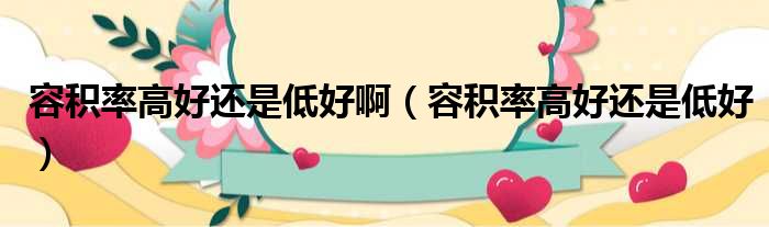 导读 大家好,甜甜来为大家解答以上问题,容积率高好还是低好啊,容积率高好还是低好很多人还不知道,现在让我们一起来看看吧!买房容积率低还,