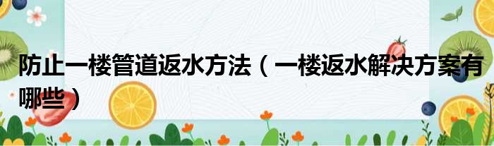 防止一楼管道返水方法(一楼返水解决方案有哪些)