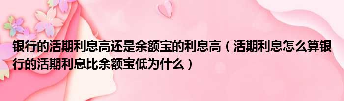 银行的活期利息高还是余额宝的利息高(活期利息怎么算银行的活期利息比余额宝低为什么)