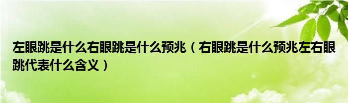 左眼跳是什么右眼跳是什么预兆(右眼跳是什么预兆左右眼跳代表什么含义)