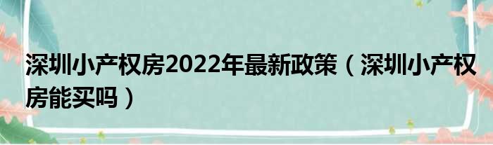 导读 大家好,甜甜来为大家解答以上问题,深圳小产权房2022年最新政策,深圳小产权房能买吗很多人还不知道,现在让我们一起来看看吧!不可以买。