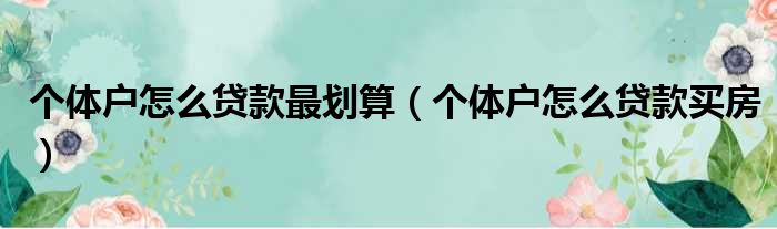 个体户怎么贷款最划算(个体户怎么贷款买房)